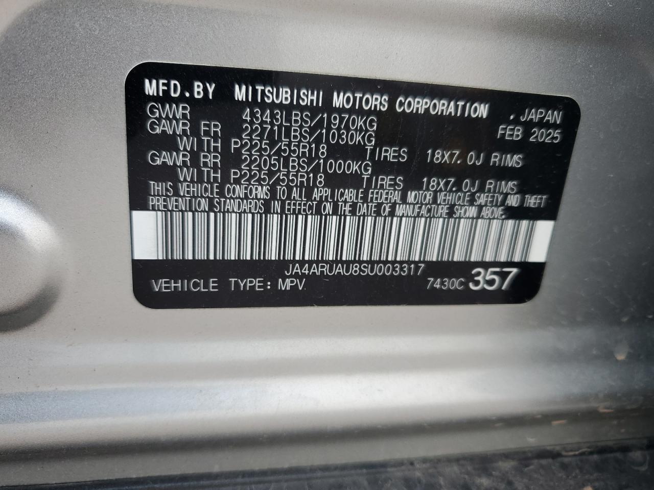 VIN: JA4ARUAU8SU003317