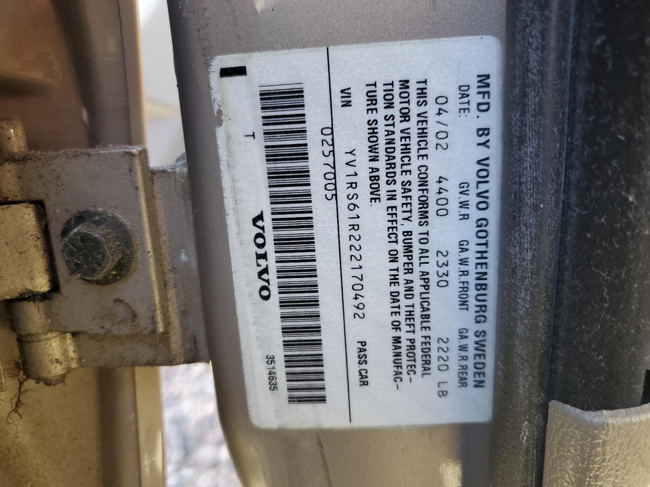 VIN: YV1RS61R222170492