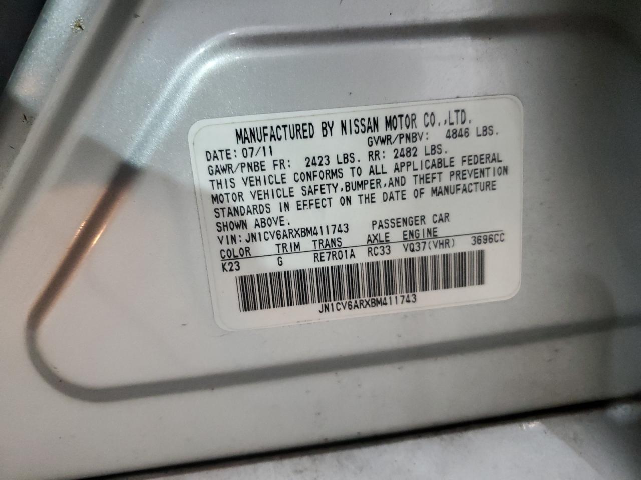 VIN: JN1CV6ARXBM411743