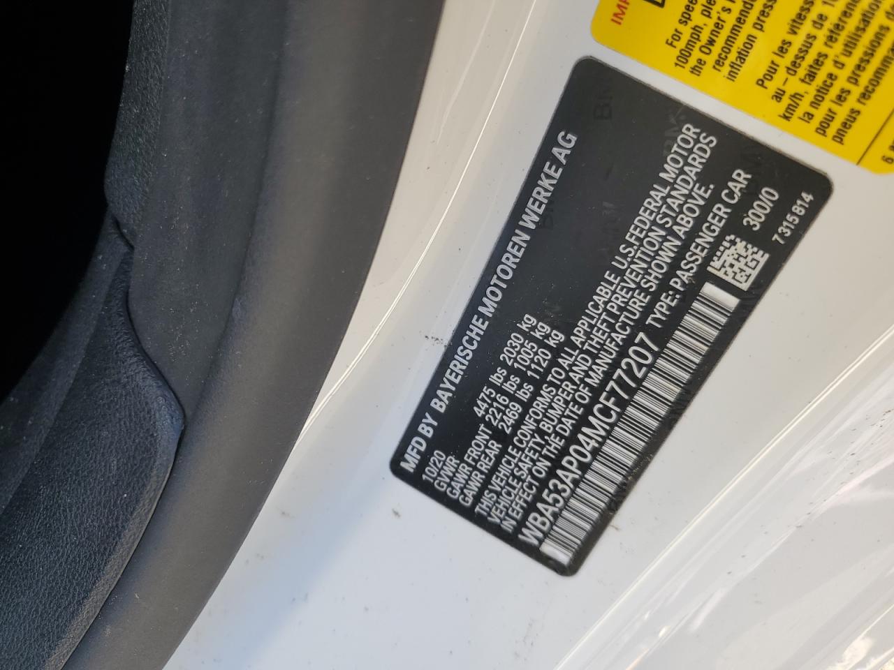 VIN: WBA53AP04MCF77207