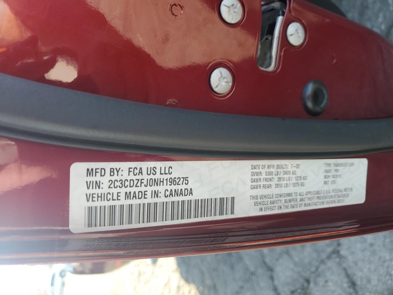 VIN: 2C3CDZFJ0NH196275