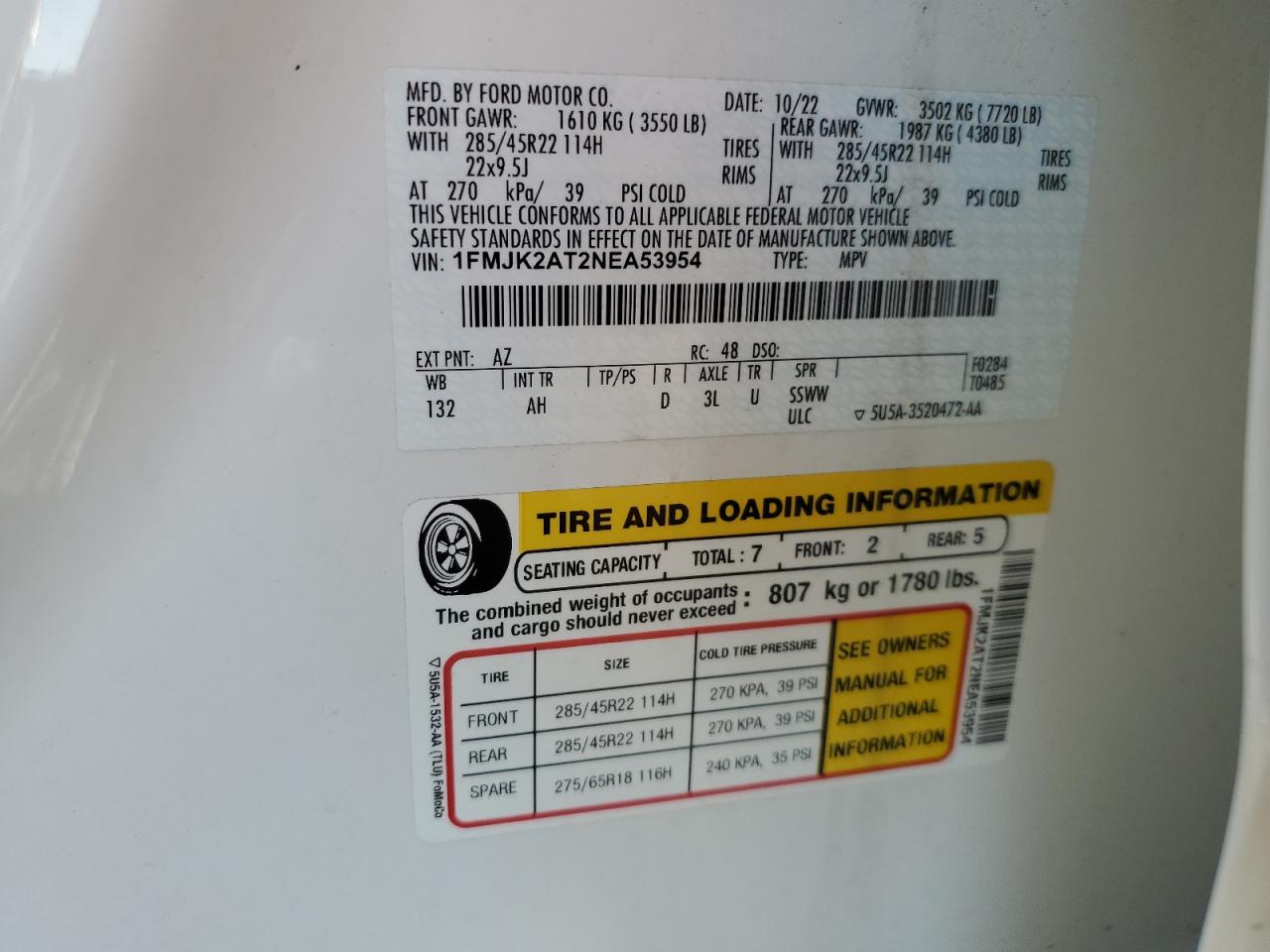 VIN: 1FMJK2AT2NEA53954