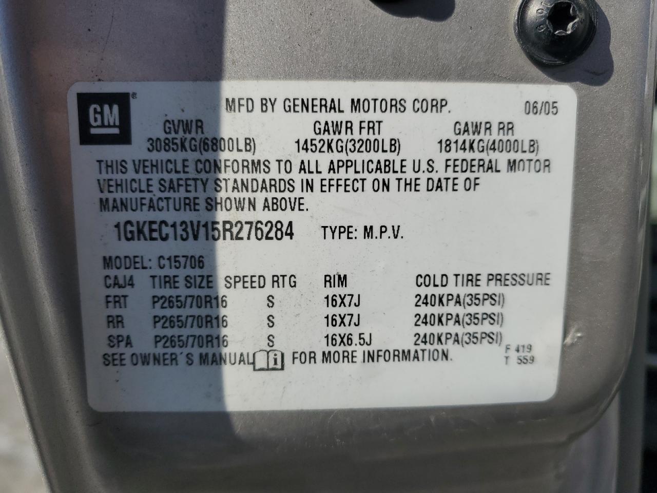 VIN: 1GKEC13V15R276284
