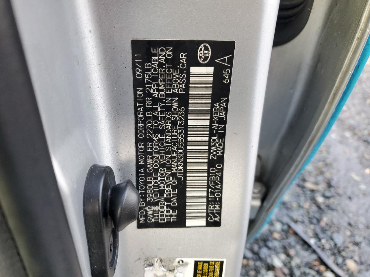 VIN: JTDKN3DU5B5313236