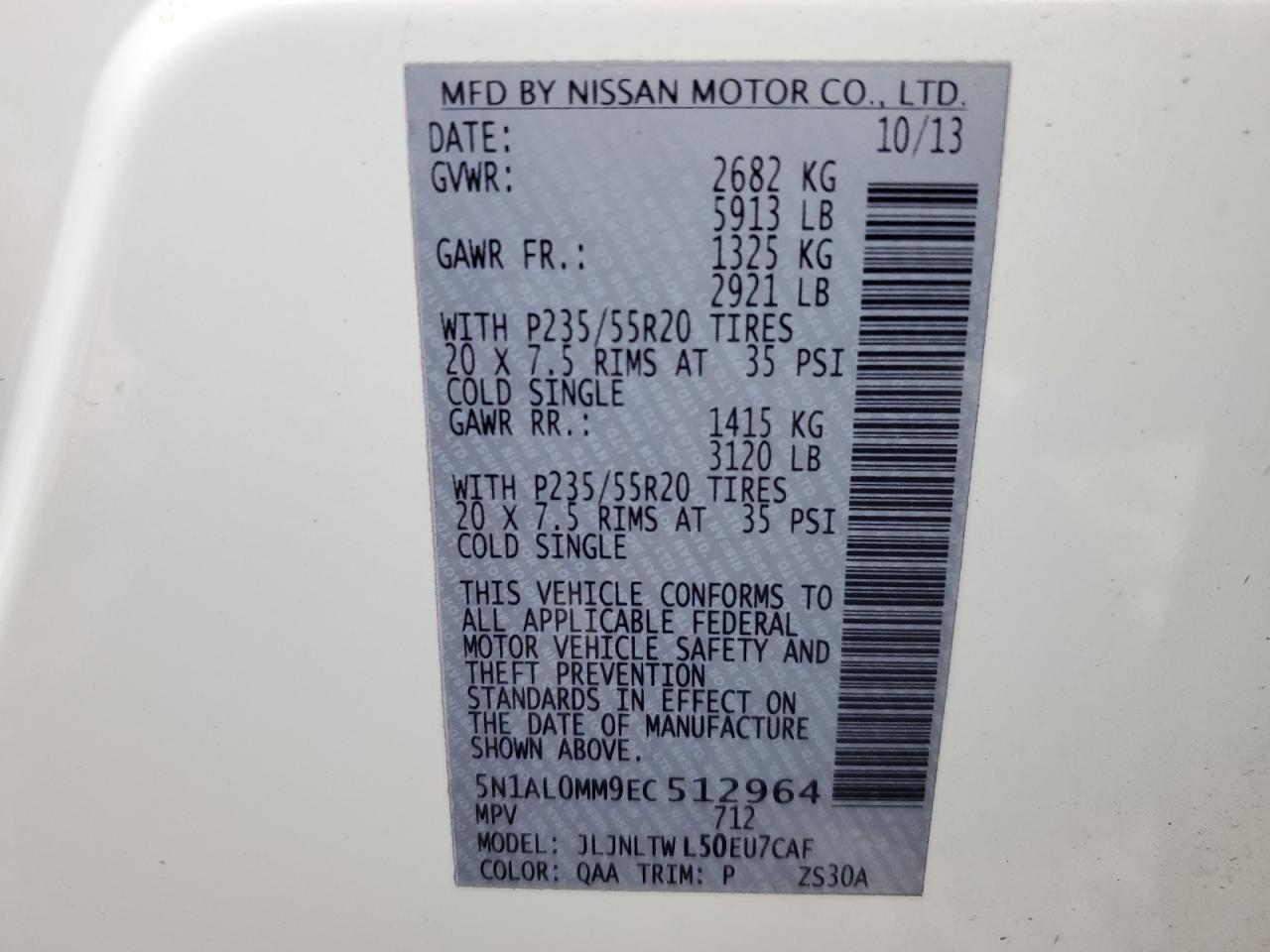 VIN: 5N1AL0MM9EC512964