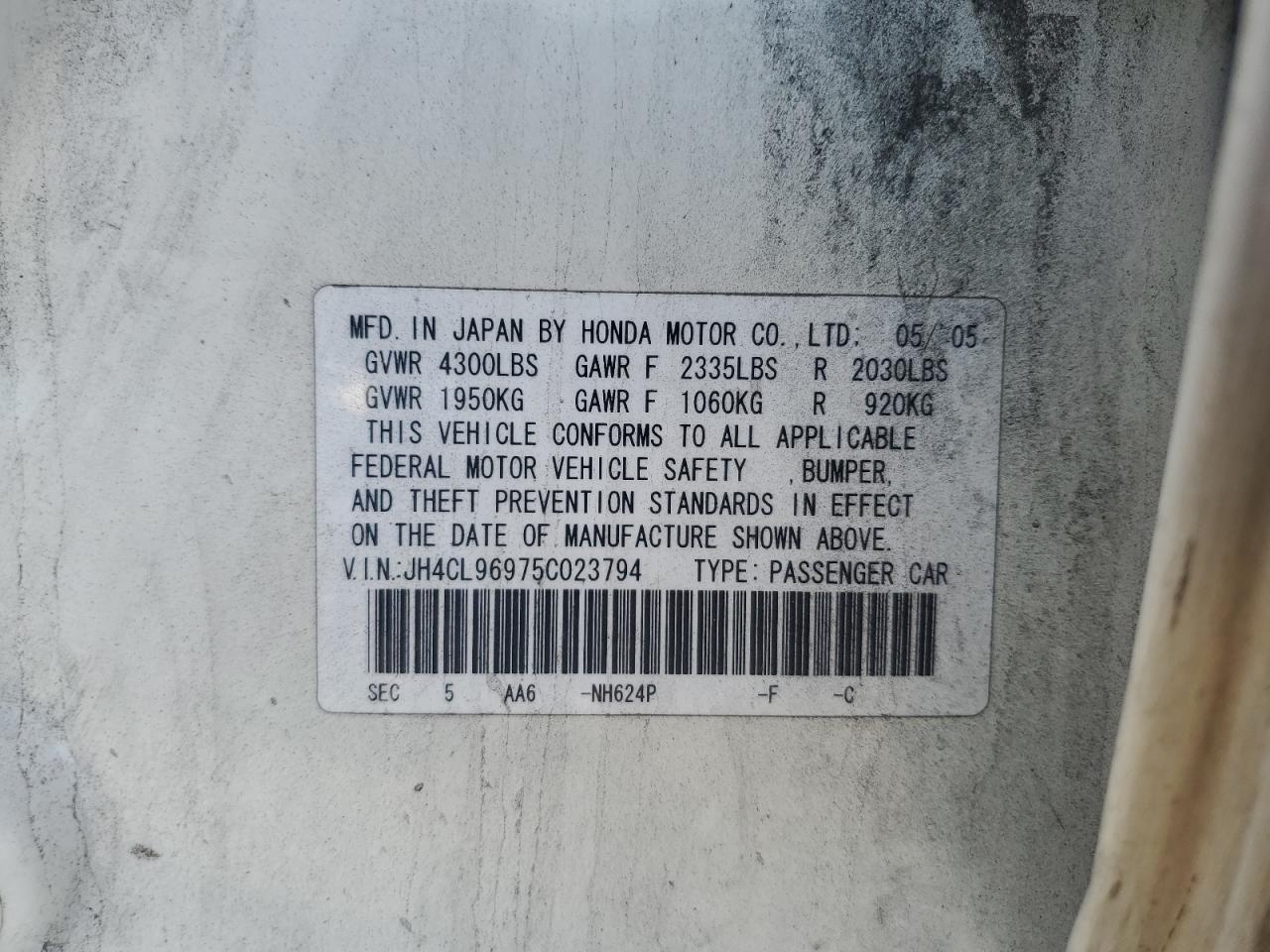 VIN: JH4CL96975C023794
