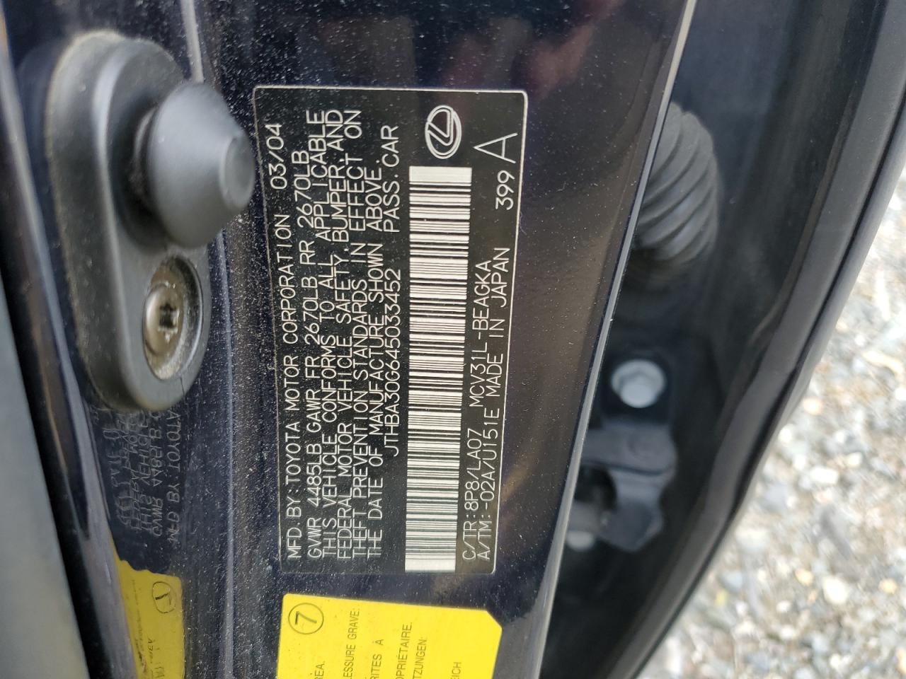 VIN: JTHBA30G645033452