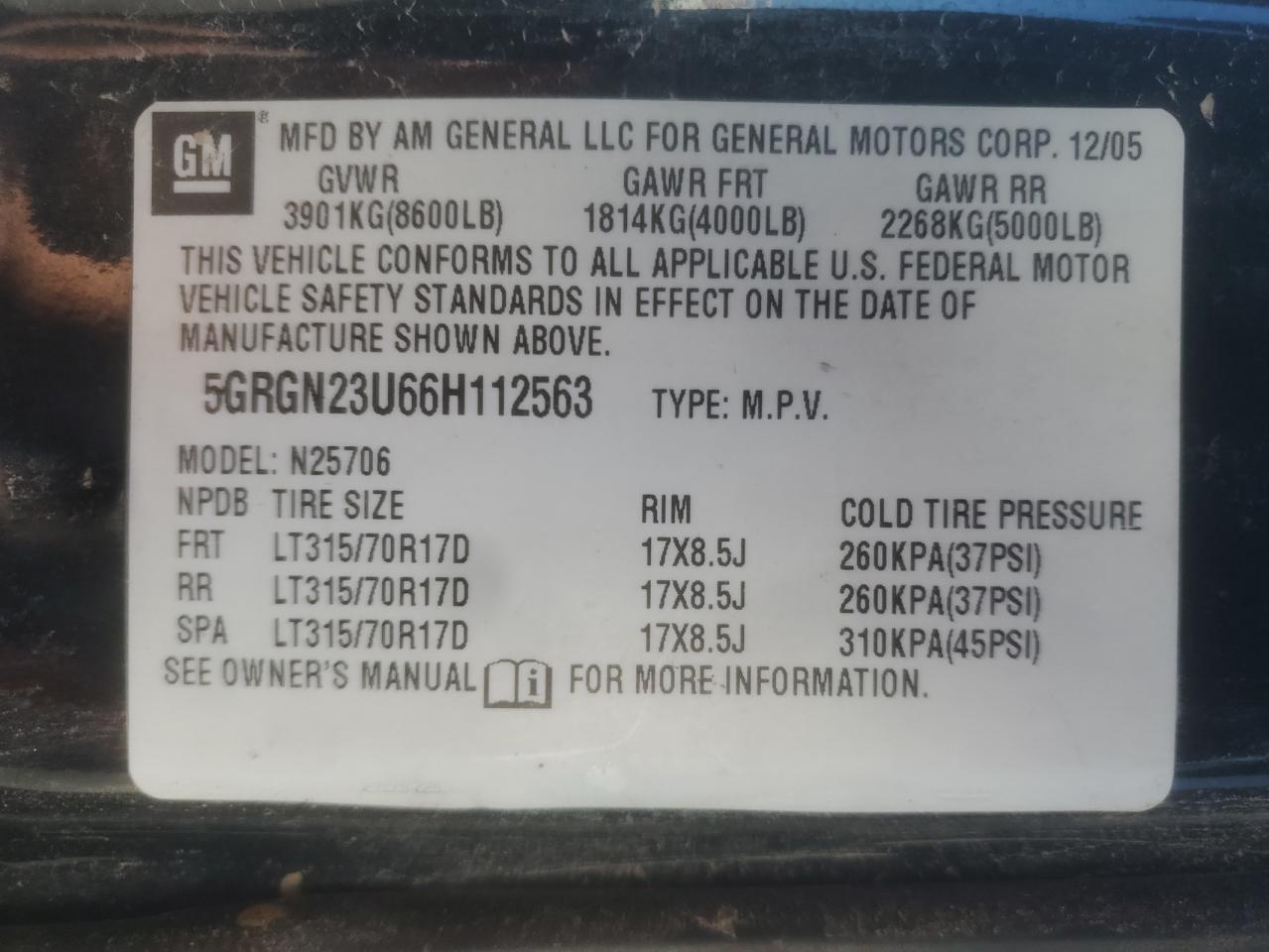VIN: 5GRGN23U66H112563