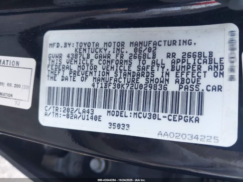 4T1BF30K72U029836
