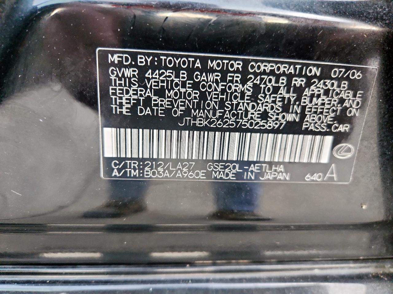 VIN: JTHBK262575025897