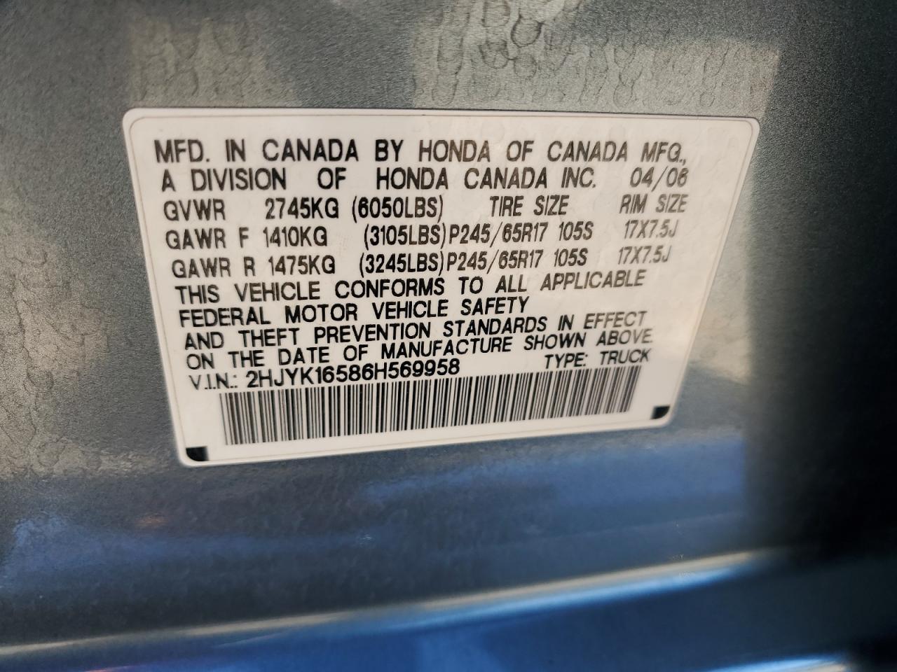 VIN: 2HJYK16586H569958